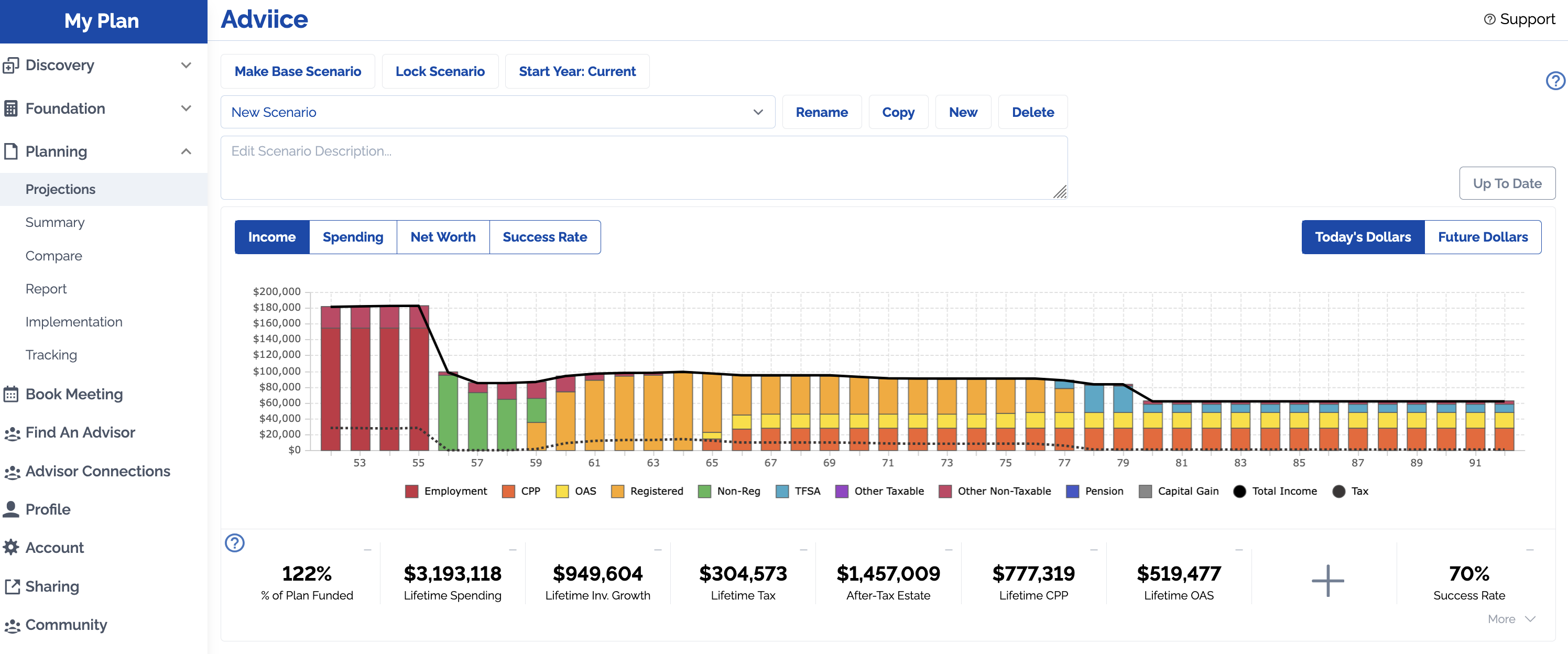 - Tax Planning: allows users to turn off income splitting or add a spousal RRSP to their plan