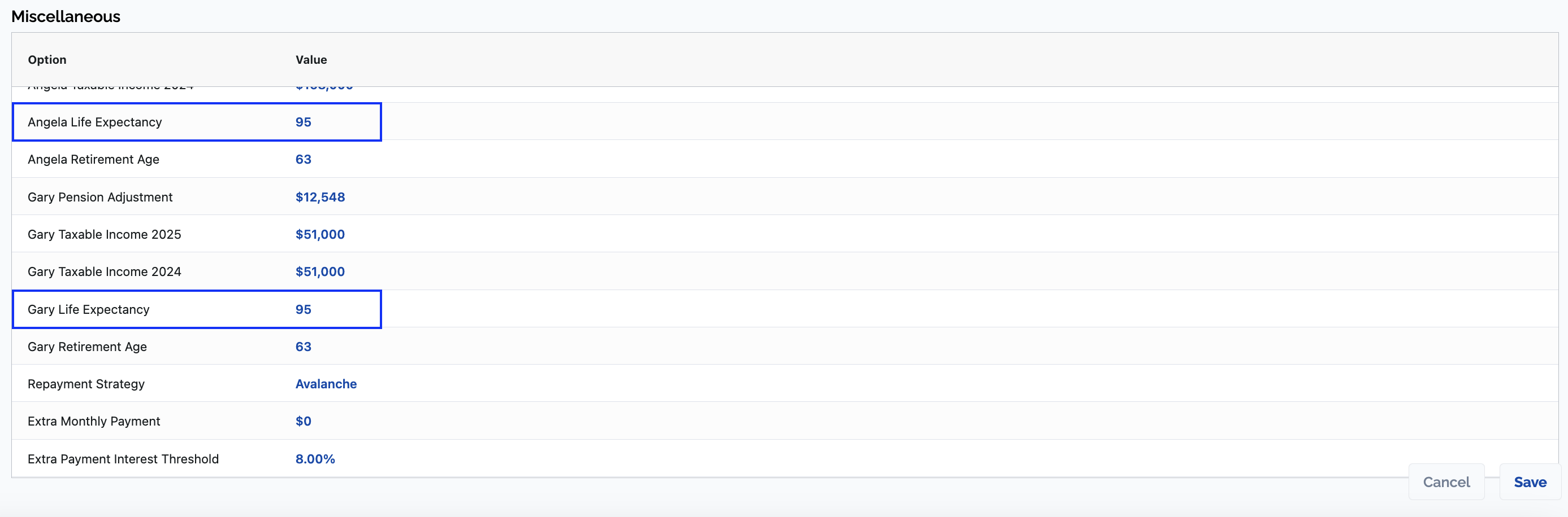 If you would like to test a shorter plan length for one or both of you. You can do so using the Survivor Strategy AI strategies to test different life expediencies and how that affects your plan.
