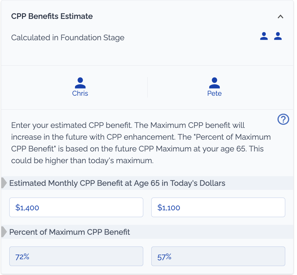 - Custom CPP Calculation: Detailed mode will create a custom CPP calculation based on your contributions. This calculation will dynamically shift depending on the income you project which makes it great for testing retirement timing and income goals pre-retirement.