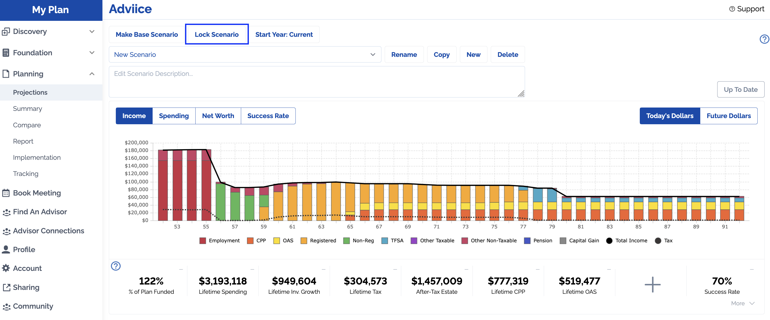 Warning: Unlocking a scenario will cause it to pull in new information from Discovery/Foundation and any new platform constants (tax rates, benefit rates, inflation rates, etc).